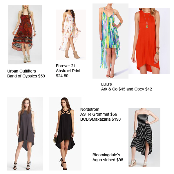In the New York Times this past Sunday the SundayStyles section Bill Cunningham’s On the Street featured the high-low dress. See the video here. This inspired today’s post. I like these high low dresses, Bill Cunningham does a good job describing what they look like.