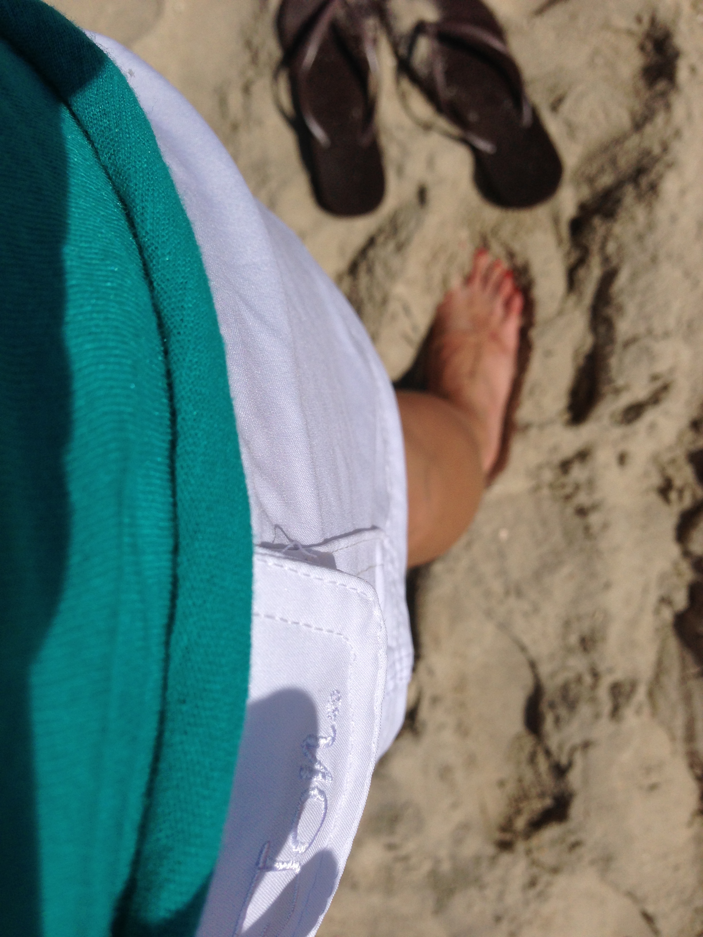 I purchased a t-shirt, board shorts, and a green army type jacket. My cousin Russell purchased board shorts. We took our new outfits to the beach once the rain cleared.