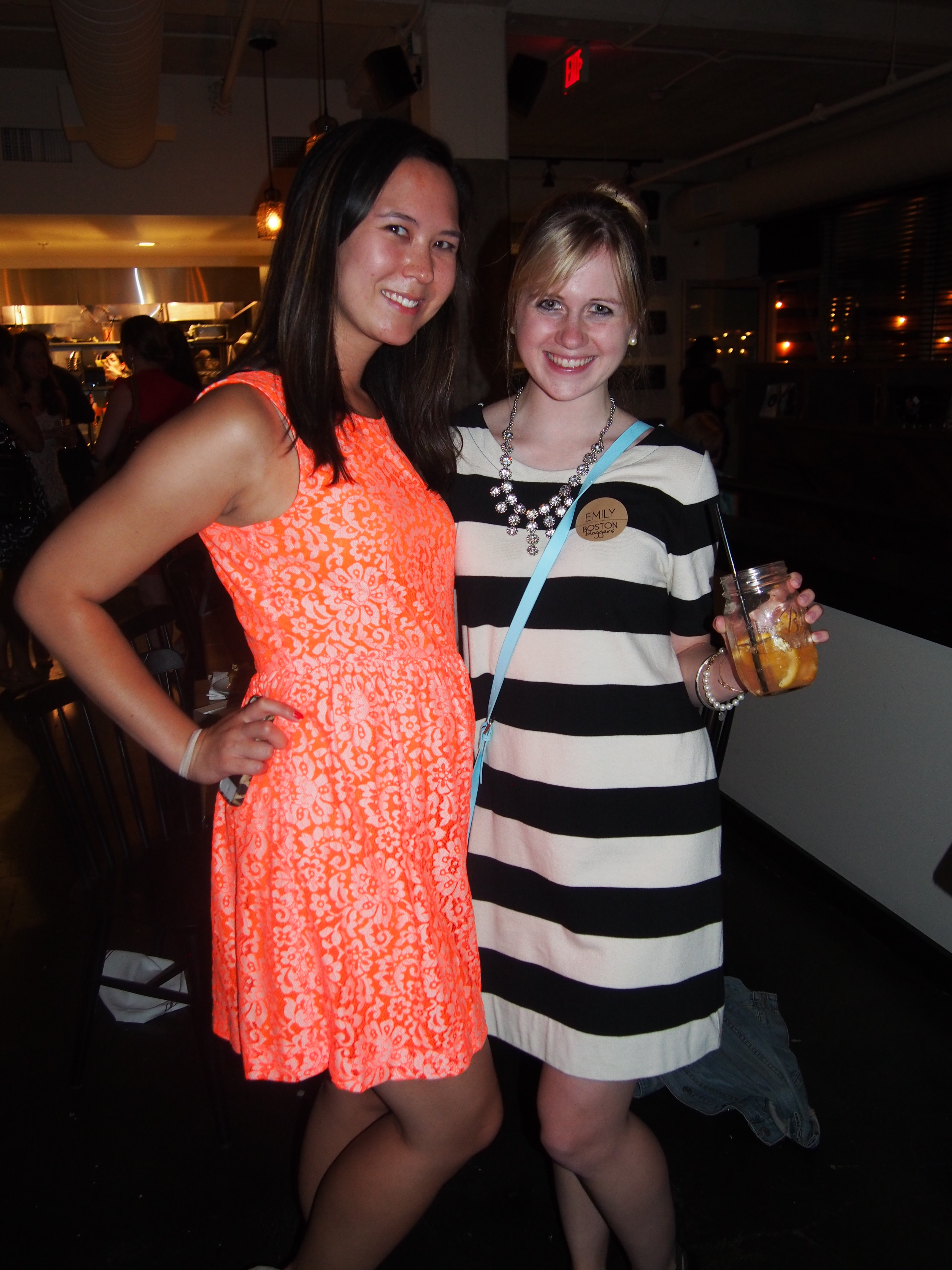 I met Emily http://shellchicd.com/ tonight at a Boston Blogger Event wearing this super stylish J Crew factory striped dress: