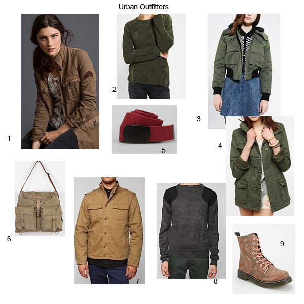 When you think military, you might think camouflage (a previous Tuesday Trend Day topic) but there is more to the military style than camouflage prints.
