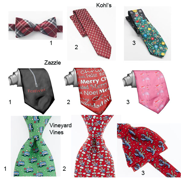 I’m going to start with the men. If you have a dressy occasion or events why not add a holiday tie. Holiday ties are similar to the holiday sweater (check out my post) and there is a range from classic to tacky. I have no problem with someone wearing a tacky tie or sweater if the event calls for that type of clothing.