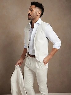 Banana Republic has a section called weddings and events. Which has outfit ideas for men and women.