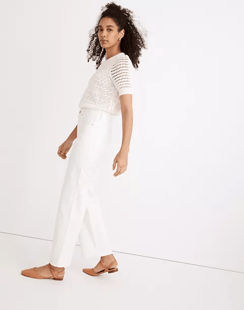 From The Free Weekly, The why, the when and the how of white pants, “I think of white pants as divided into four categories from most casual to near-professional: 1.] white super-casual sweatpants, 2.] white jeans, 3.] white lightweight cotton chinos or linen pants, and 4.] off-white (“winter white”) lightweight wool dress trousers. Each has its own useful place.”