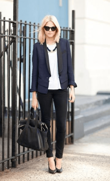 From Stylecaster, “This fashion rule still has its fair share of subscribers, but let us make it clear: Navy and black look super-chic together.”