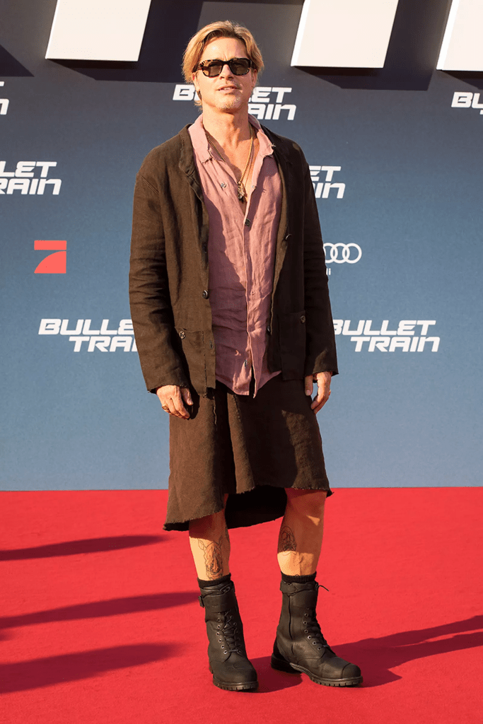 “When Brad Pitt arrived at the premiere for new movie “Bullet Train” last month, his laidback linen outfit made headlines everywhere — or part of it did, at least. The actor, who is known for hypermasculine roles in films such as “Fight Club” and “Once Upon a Time in Hollywood,” completed his blush pink-and-brown ensemble with an eye-catching twist: a skirt.”