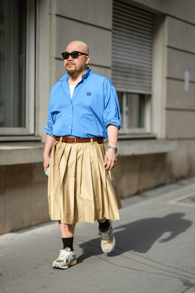 “In recent years, evolving conversations around gender and identity have instigated a collective reckoning about what it means to dress like a man. Gen Z and younger millennial stars, such as Harry Styles and Lil Nas X, regularly bring elements of femininity into their wardrobes — and retailers are taking notice. Online stores like ASOS, Mr Porter, Cettire and SSENSE are among those now stocking men’s skirts, many of which would be indistinguishable from womenswear designs were it not for the male models.“