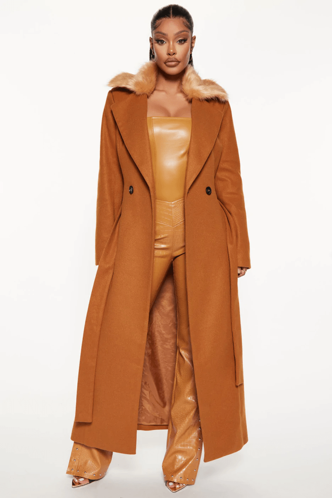 The long (maxi) coat- I love a floor-length coat; it’s a dramatic, stylish look. However, when shopping for long coats, you might find some hems that hit your calves. So choose a length that fits your liking.