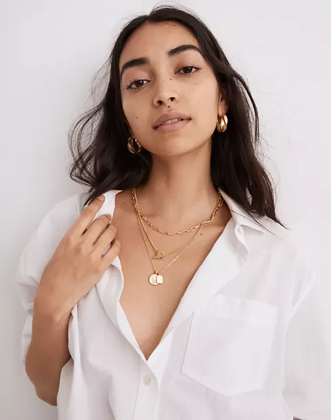Nora created several looks with her necklaces by stacking different pieces.
