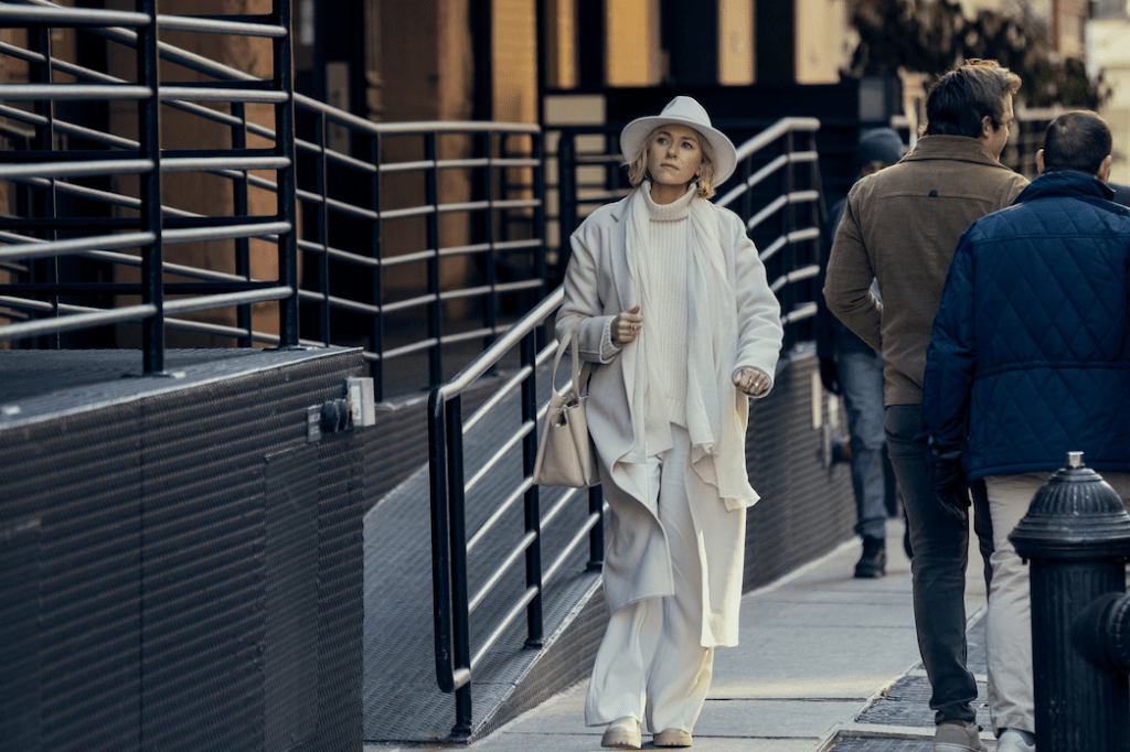 From Marie Claire, Naomi Watts’ Outfits In ‘The Watcher’ Are An Ode To Decisive Minimalism. “We’ve dubbed it the ‘clean palette’ look, thanks for its wash of natural tones and textures that allows the wearer to shine thanks to its polished and always put together appearance.“