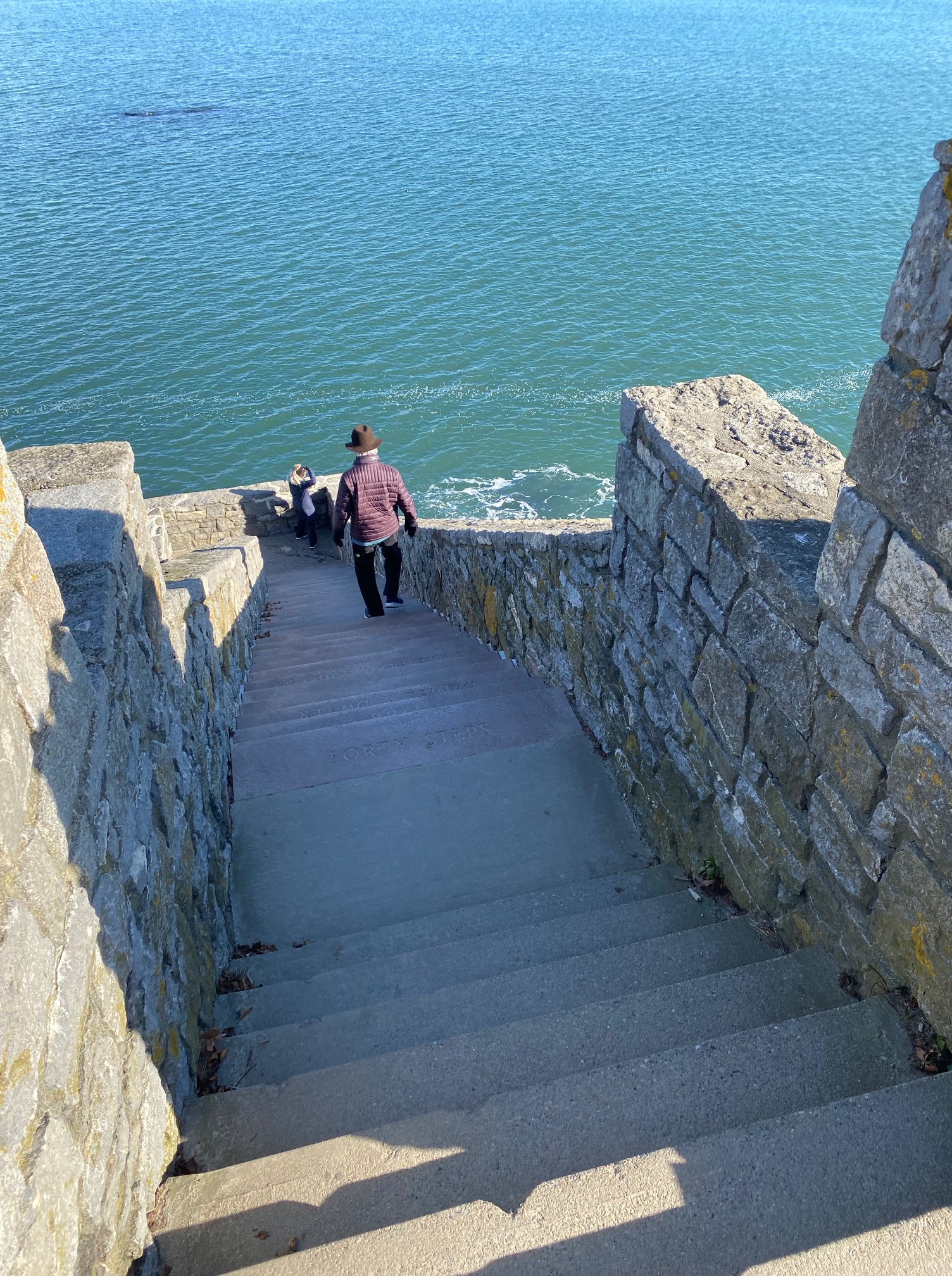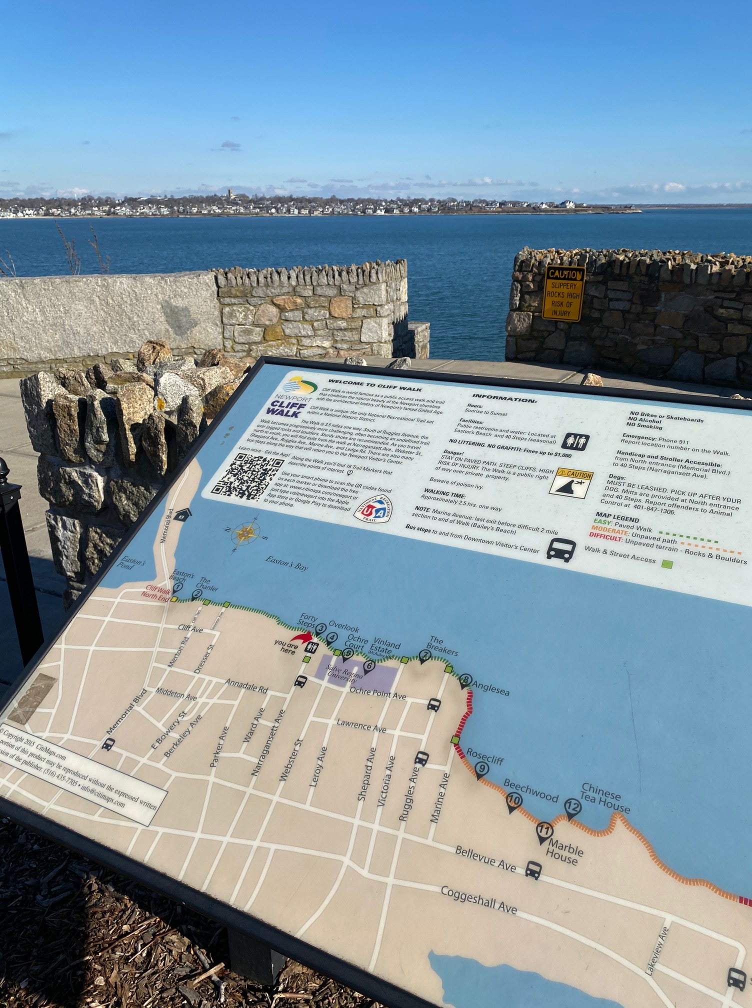 I only walked on the paved sidewalk; my total distance was 2 miles. The path continues on the rocks.