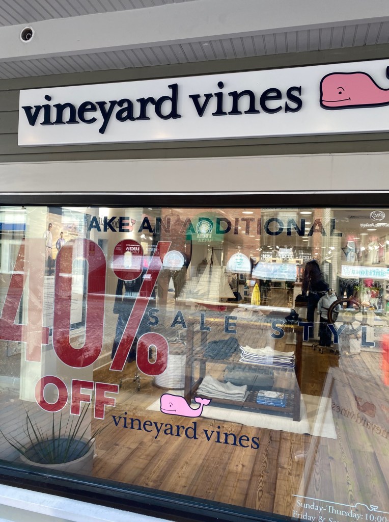 Some big-name stores in Newport include Vineyard Vines, Banana Republic, Lululemon, and Sephora.