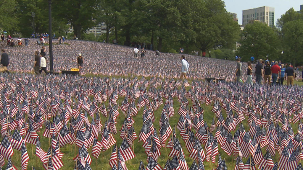 In Boston, volunteers placed flags in Boston Common. Since 2010, we and hundreds of volunteers have created a majestic garden of flags on Boston Common for Memorial Day weekend. “Each of the 37,000+ flags we plant every year at the Soldiers and Sailors Monument represents every brave Massachusetts service member who gave his or her life defending our country since the Revolutionary War. The completed garden is a breathtaking tribute to the true meaning of Memorial Day and a powerful message of community support to the families of these fallen heroes that their sacrifices will never be forgotten.” Memorial Day Flag Garden
