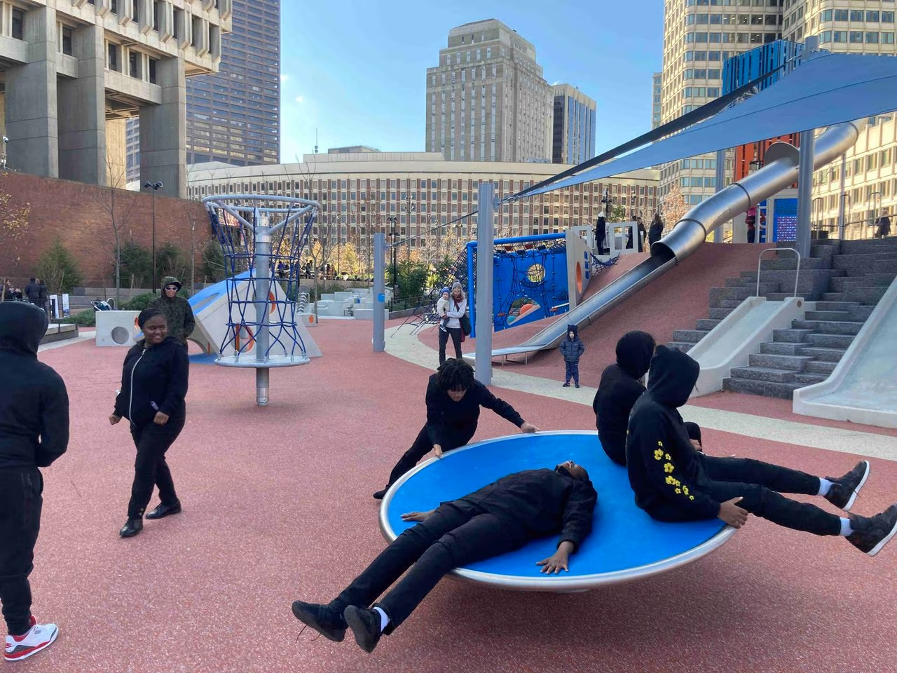Be careful when visiting: The slide at the City Hall Plaza playground is Boston’s hottest attraction.